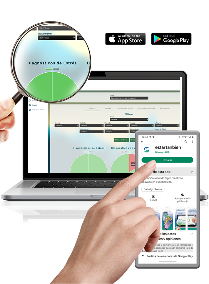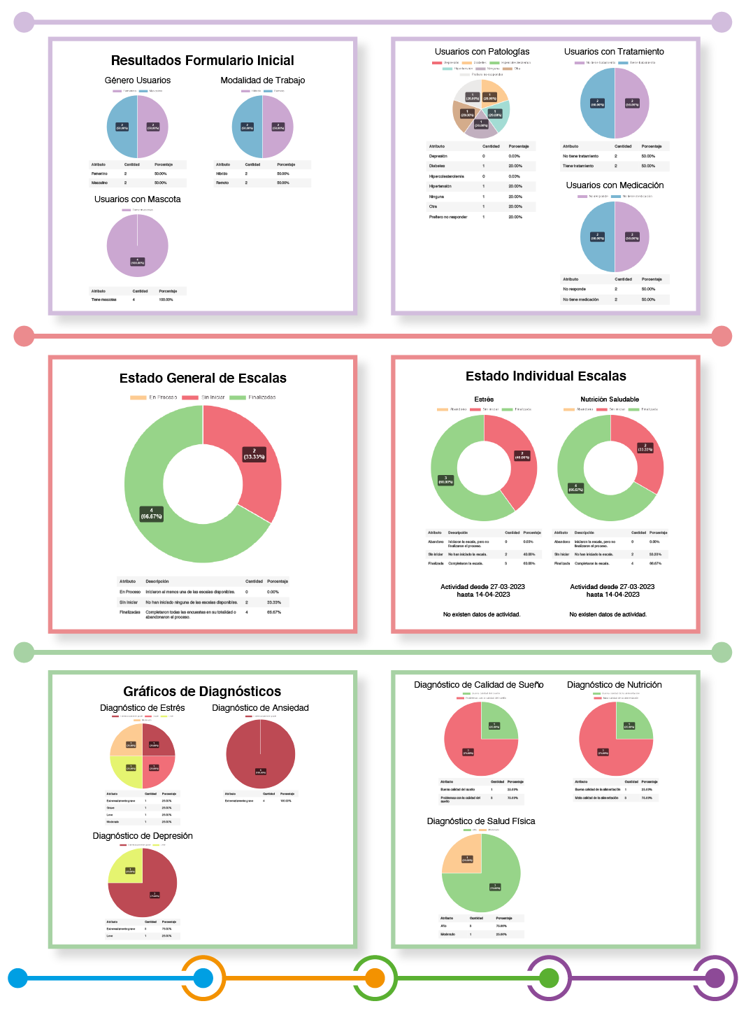 Una única medición simultanea y anónima utilizando la APP, permite ver detalles de aspectos mentales y físicos del personal en forma indidual/grupal y general en TIEMPO REAL.