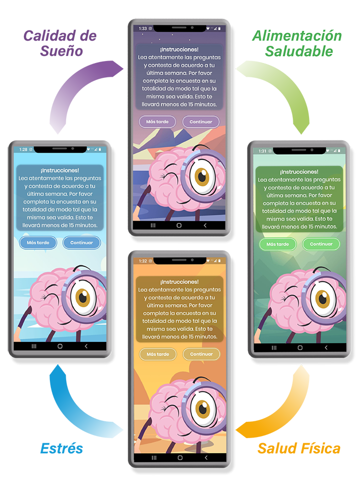 Período de Evaluación Integral en Salud: Una única medición simultanea y anónima utilizando la APP, permite ver detalles de aspectos mentales y físicos del personal en forma indidual/grupal y general en TIEMPO REAL.